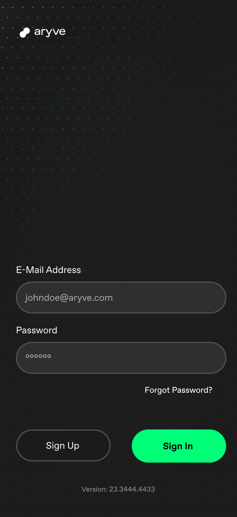 As a first step, log into the app with your aryve Studio credentials to be able to use your scan with the aryve indoor navigation solution.